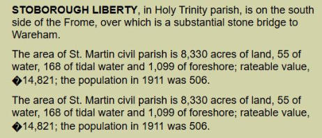Wales described Stoborough like this: STOBOROUGH, a liberty in