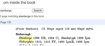 references to “Stanberge” in the Domesday Dorset lists. It is variously